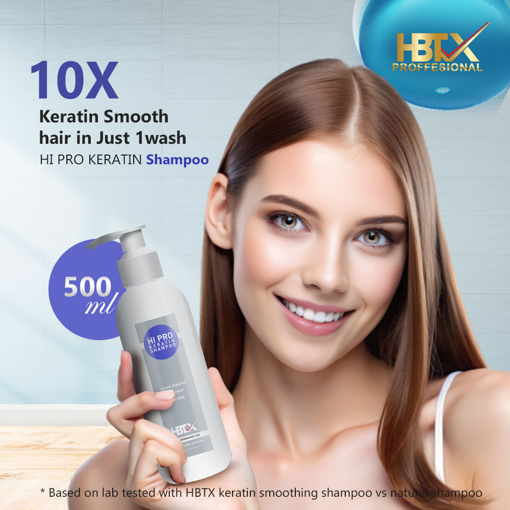 HBTX® HI PRO KERATIN Shampoo Infuse Keratin Protein Deeply into Hair Leaving it Straight, Smooth and Healthy - 500ml | Keratin shampoo Deep Cleanse & Repairing Damaged Hair, For Men & Women