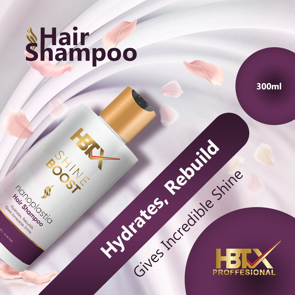 HBTX® Nanoplastia Hair Shampoo - 300ml for Color Treated Dry & Damaged Hair | Nanoplastia Shine boost Shampoo for Cleansing and Repairing Hair, With Wheat Protein, For Men & Women